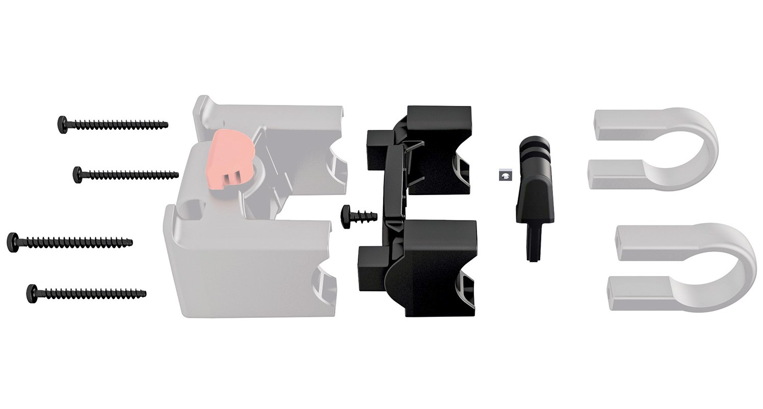 Cet adaptateur a été conçu pour s’utiliser avec les supports de guidon Klickfix, pour installer l’écran Bosch Intuvia. Il vient se fixer entre le support et les attaches comme montré dans le schéma suivant.
