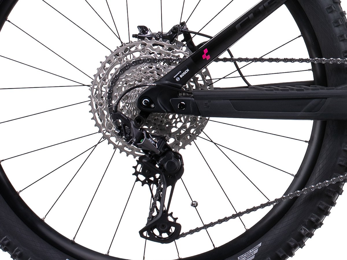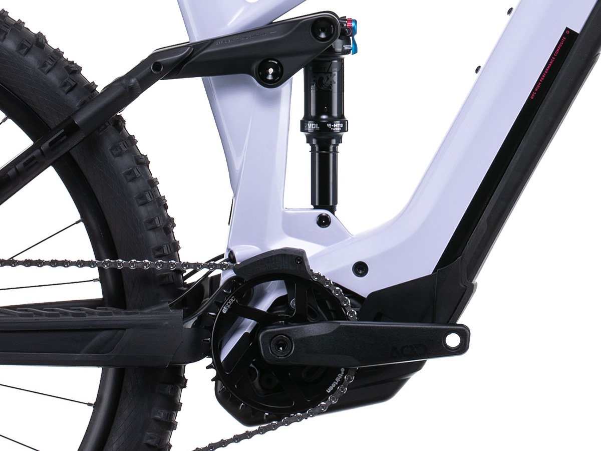 Le pilotage du CUBE Stereo Hybrid 140 HPC SL 625 27.5 violetwhite´n´black 2022 est intuitif et dynamique, grâce aux performances de l’unité motrice Bosch CX de quatrième génération.