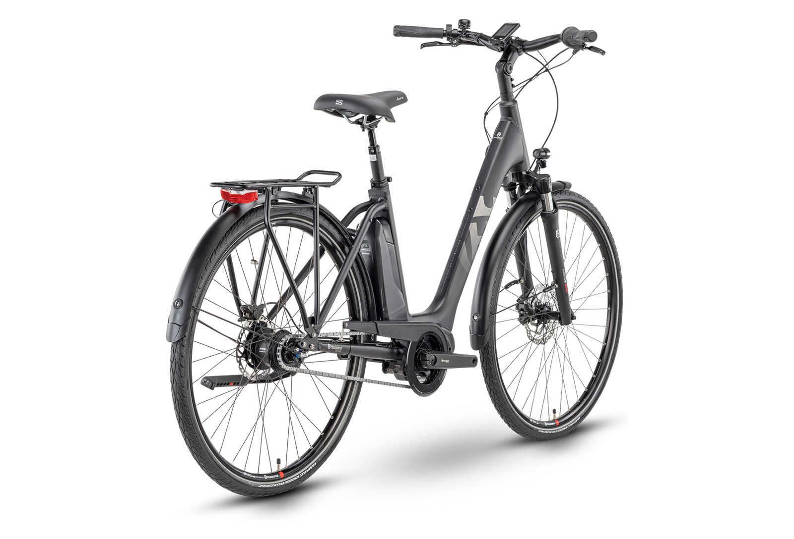 | Accessoires | AXA Compactline, 20 Lux Head lamp / Axa Blueline E Rear light / Husqvarna City, MIK-System Carrier / Eurofender Tempo 58 Fenders / Ursus MOOI KSA18, adjustable Kickstand |
