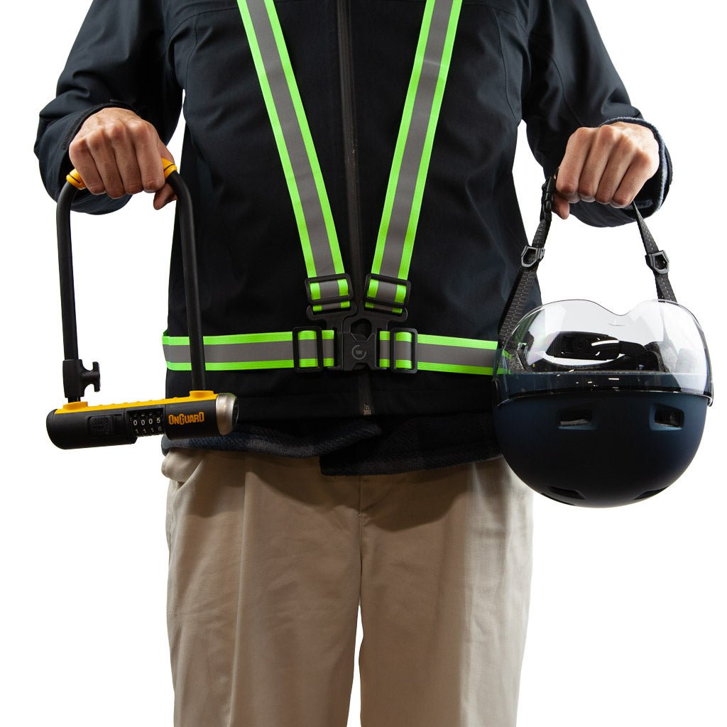 Ce harnais haute visibilité est un accessoire de sécurité très pratique. Jaune et réfléchissant, il se repère de loin et assure une meilleure signalisation du cycliste. Le harnais s’enfile rapidement par-dessus les vêtements et se ferme via une boucle de sécurité.
