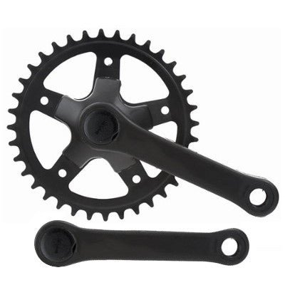 Le pédalier de vélo est spécialement conçu pour les vélos de 16 à 20 pouces. Il est équipé d’un seul plateau de 36 dents et est fourni avec ses deux manivelles composées en acier avec un revêtement plastique. Ces manivelles mesurent 127 mm de long.