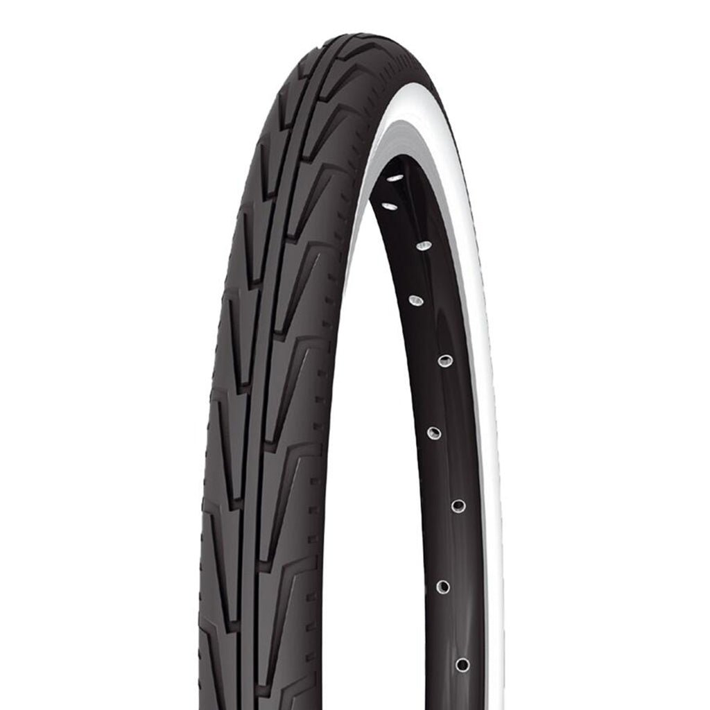 De coloris noir et blanc, ou complètement noir, le pneu de vélo Michelin City Junior a 2 dimensions au choix: